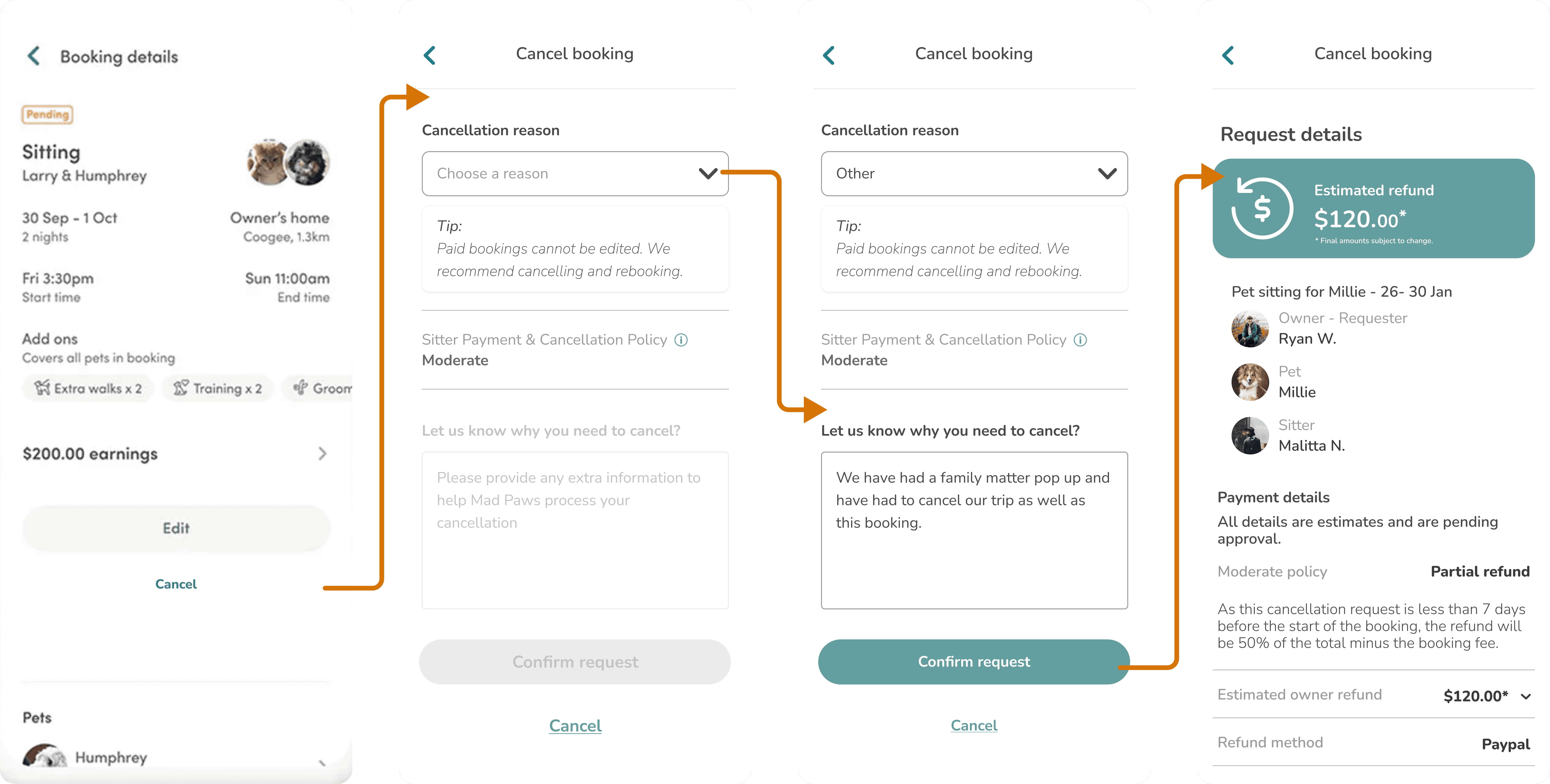Sitters and Owners had to use a cumbersome ticket submission process to cancel paid bookings—nobody liked it. Owners faced refund delays, Sitters were overly involved, and CS struggled with an endless ticket backlog.